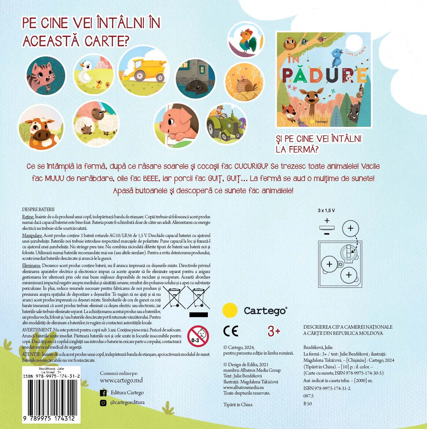 Ce se întâmplă la fermă după ce cântatul cocoșului trezește toate animalele? Ei bine, vacile mugesc de nerăbdare, oile behăie, porcii guiță… Ferma este plină de sunete! Aflați singuri acest lucru apăsând butoanele magice și ascultând vocile animalelor.